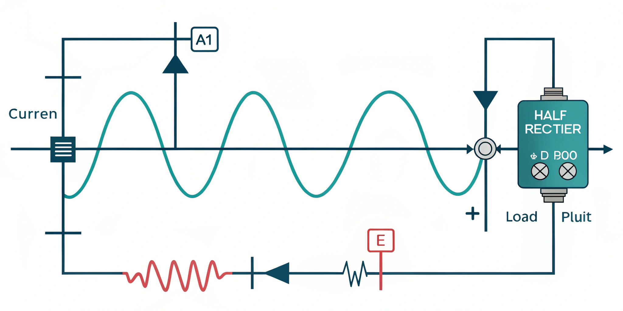 In a typical setup, you connect one diode in series with the AC source and the load resistor. During the positive half cycle, the diode conducts and allows current to flow through the resistor. Consequently, you see a voltage pulse across the load that matches the input peak minus the diode drop. During the negative half cycle, the diode blocks current. Therefore, the output stays at zero until the next positive cycle. By repeating this process, you obtain a pulsed DC signal that can feed simple electronics.