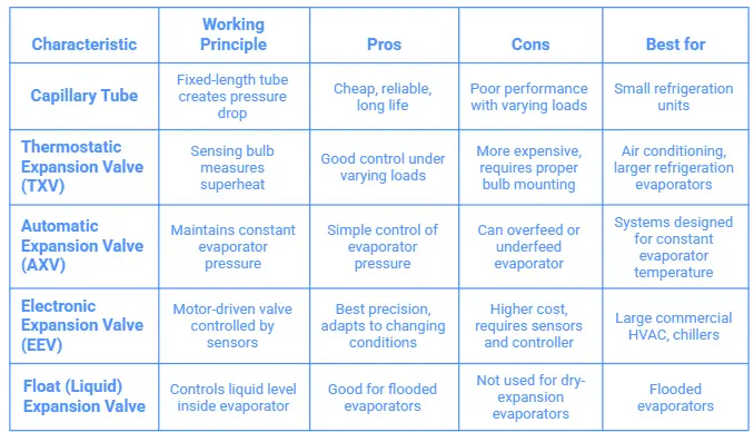 - Load Variability: If the load swings widely, use a TXV or EEV. A capillary tube can be considered for fixed-load small systems.